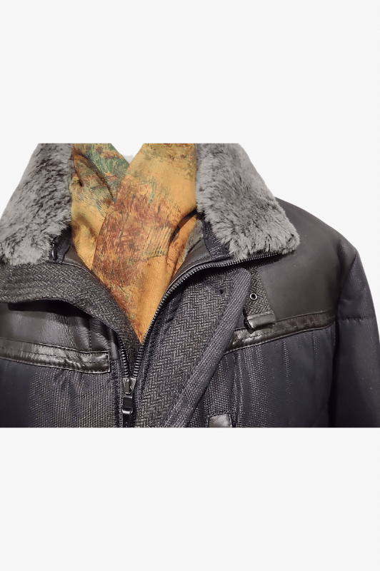 воротник из овчины отстегивается и остается второй воротник с отделкой из твида и натуральной кожи,