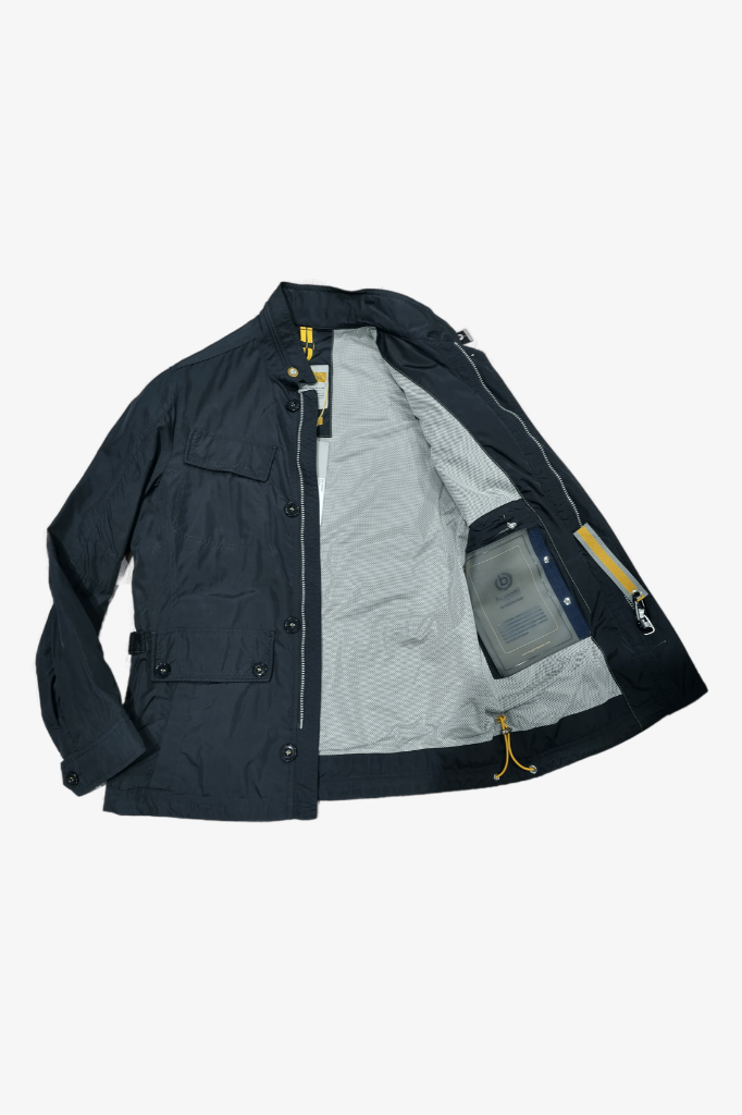 Германия, Ткань GORE NEX, длина по спинке для 46 размера - 75 см., множество карманов, застежка - пуговицы и молния, воротник - стойка без капюшона,