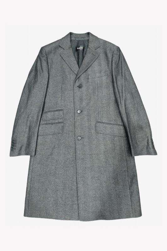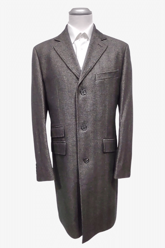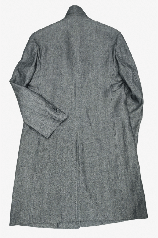 Классическое, слегка приталенное, ручная строчка, отложной воротник, одна шлица, длина-105 см.,