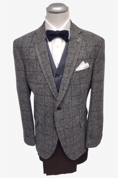 Пиджак твидовый серый в крупную вишневую клетку BARUTTI TARSO
