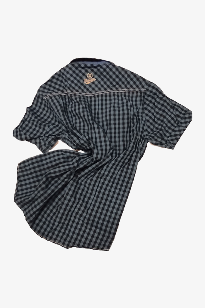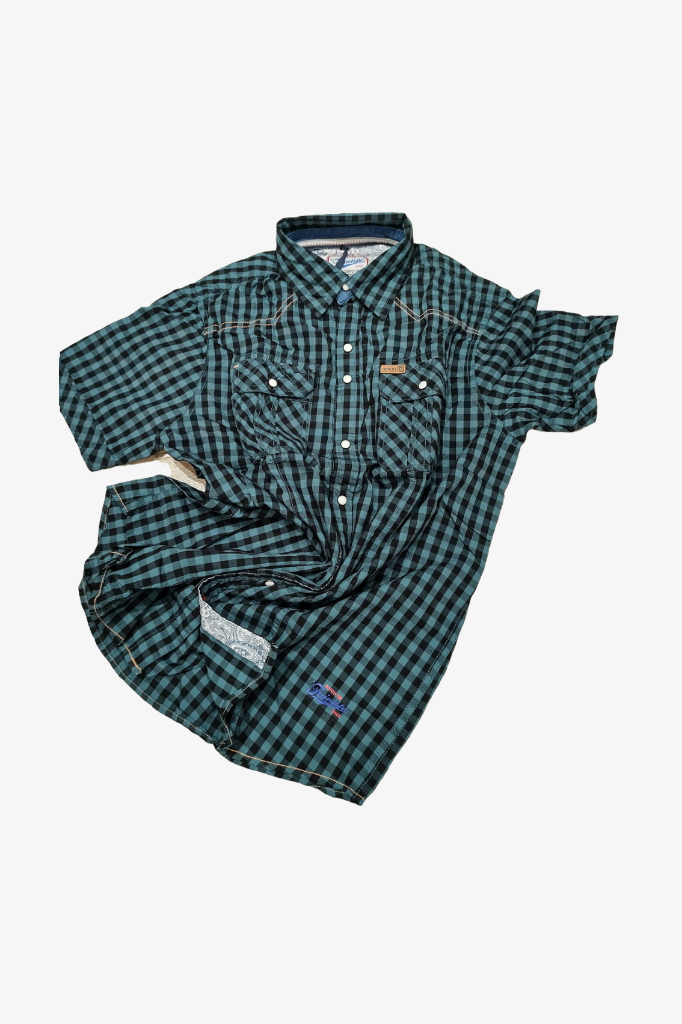Рубашка с коротким рукавом спортивная черно петролевая клетка TWINLIFE DRAGONFLY