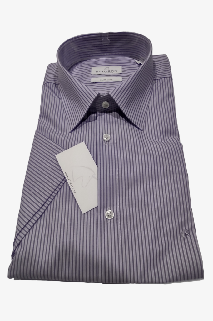 Рубашка 100% хлопок с коротким рукавом сиреневая в темную полоску EINHORN ESTABLISHED SLIM